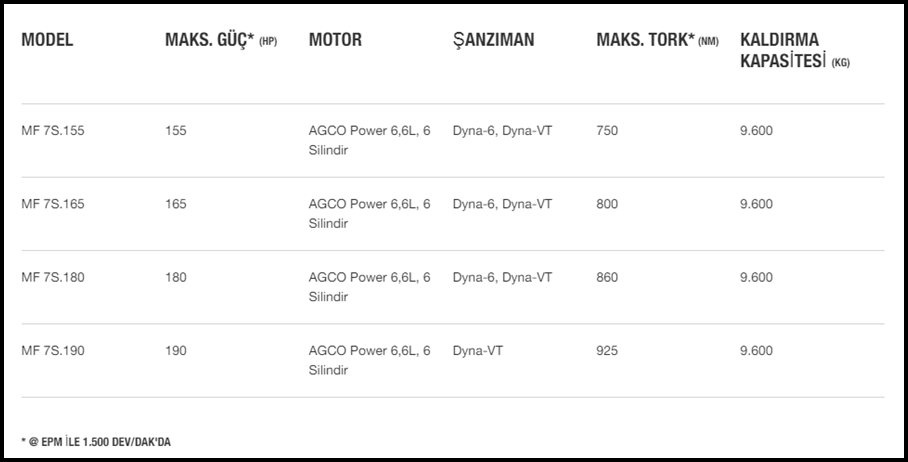 Yeni MF 7S, işletme maliyetlerini düşürürken kullanıcıya en üst düzeyde verimlilik sağlamak için kullanım kolaylığı ve güvenilirlikte yeni standartlar belirlemek için en son teknolojiyi içerir.